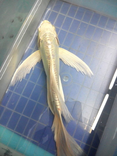 精選長鰭白金龍鯉~ 約28cm,胸鰭長約8cm~ 僅此一隻。 限新北鶯歌自取,私訊報價